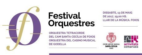 El Centre Artístic Musical de Foios organitza el Festival Orquestres amb l’actuació de L’Orquestra Tretracorde del CAM Santa Cecilia de Foios i l’Orquestra del Casino Musical de Godella. Data Dissabte, 13 de maig de 2017 a les 19.